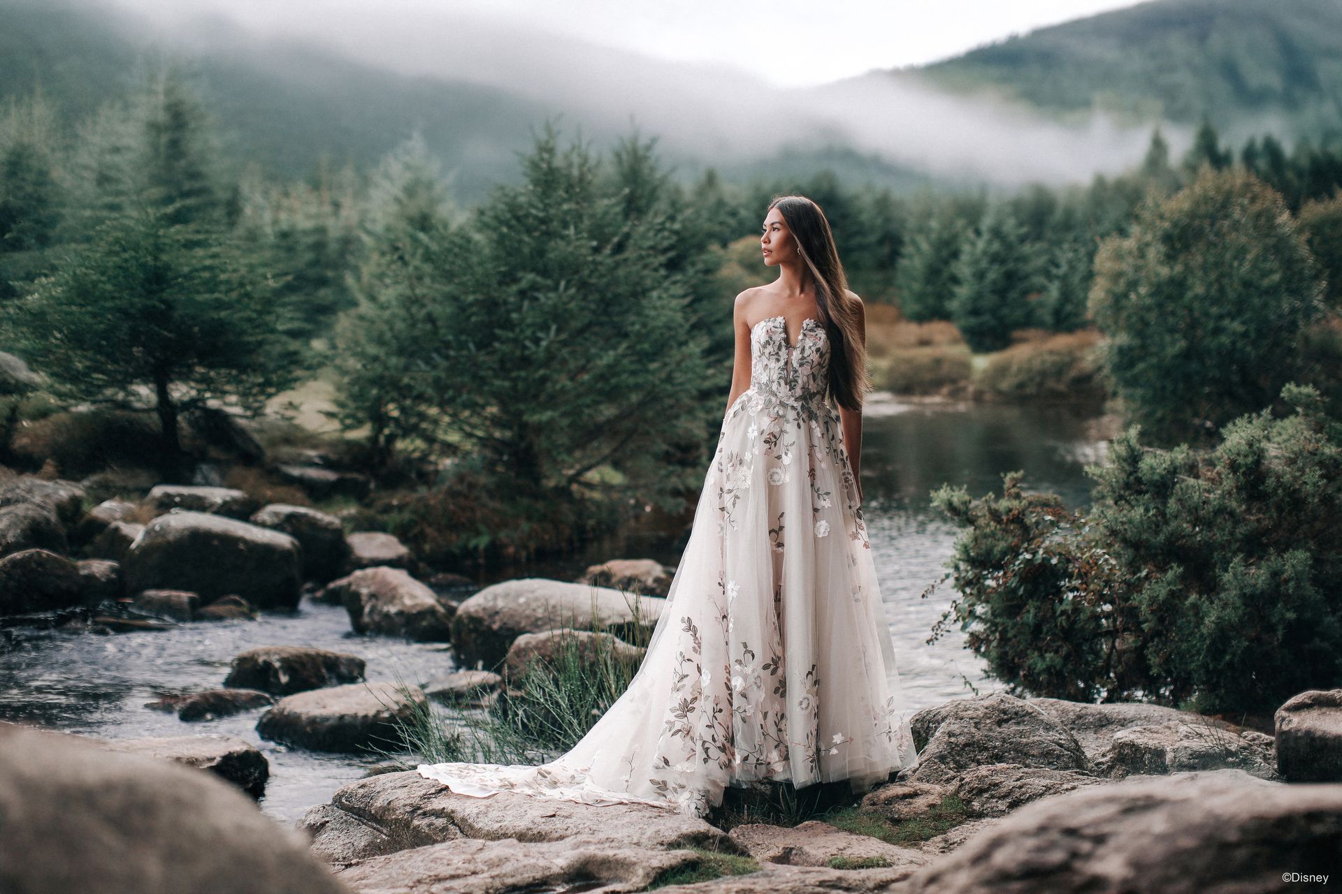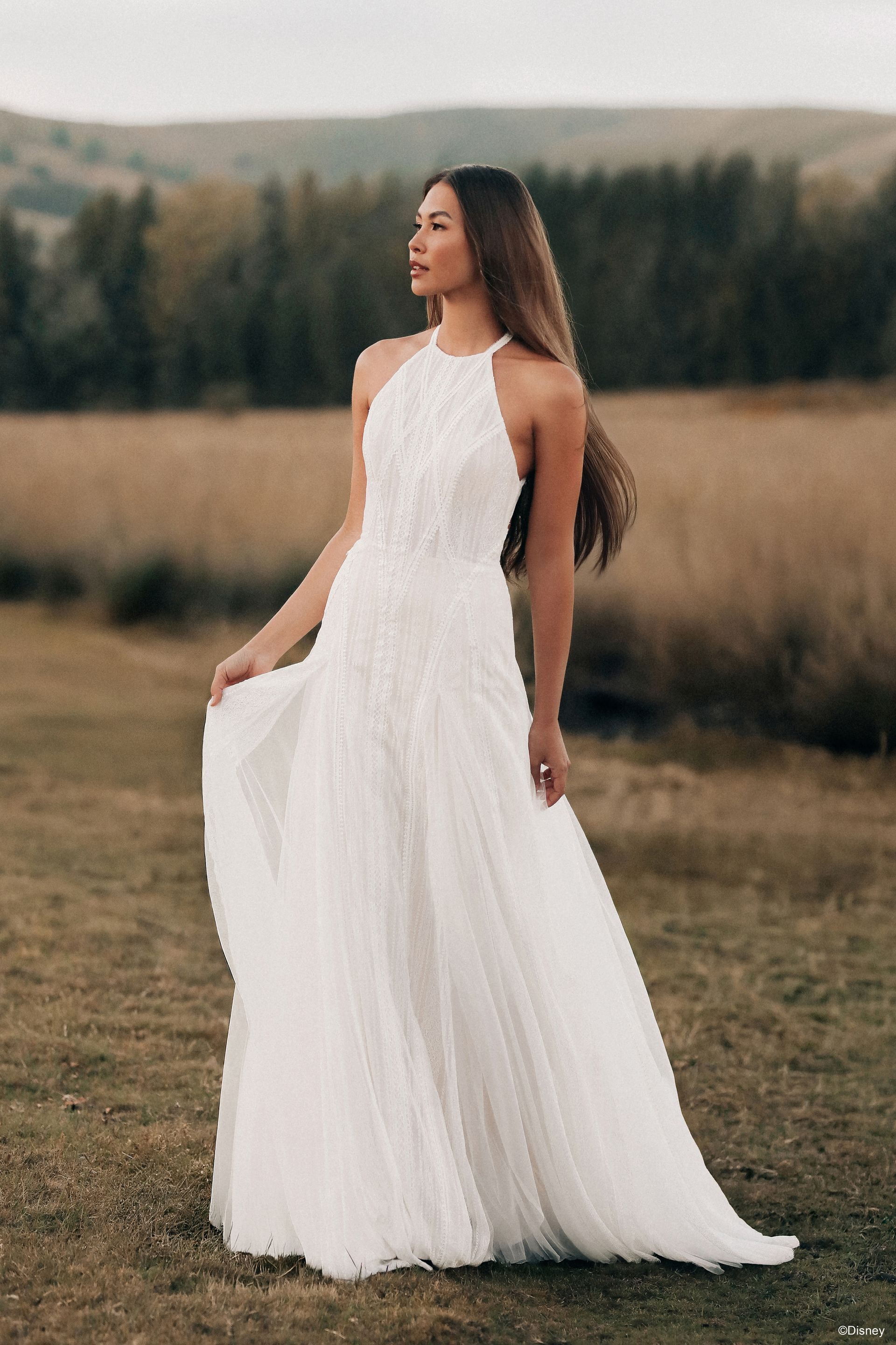 Discover the Pocahontas wedding dress from the Disney Fairy Tale Weddings Collection, inspired by Pocahontas. Designed for the free-spirited bride, this gown reflects nature, intuition, and a love story guided by the heart.
